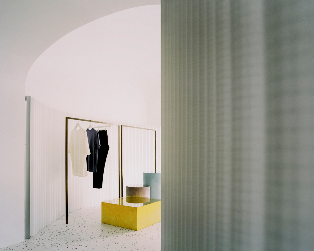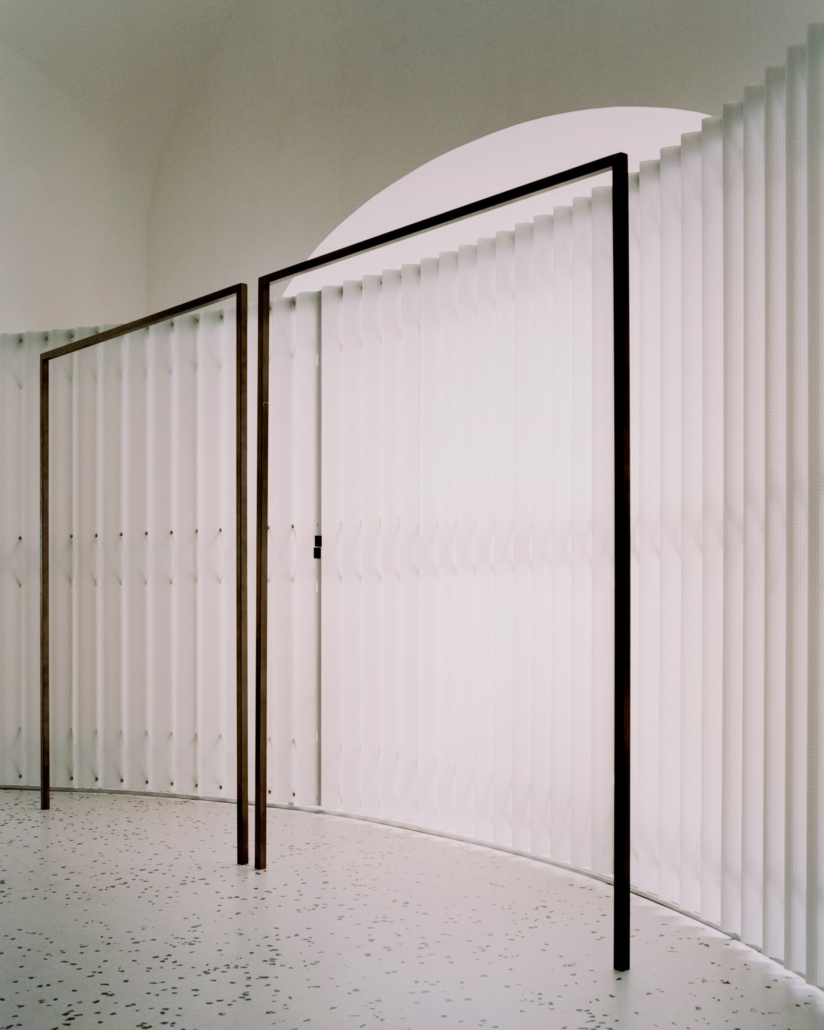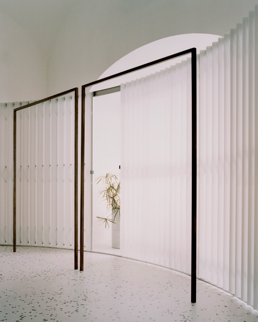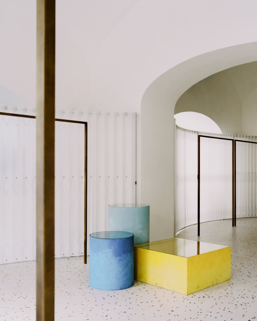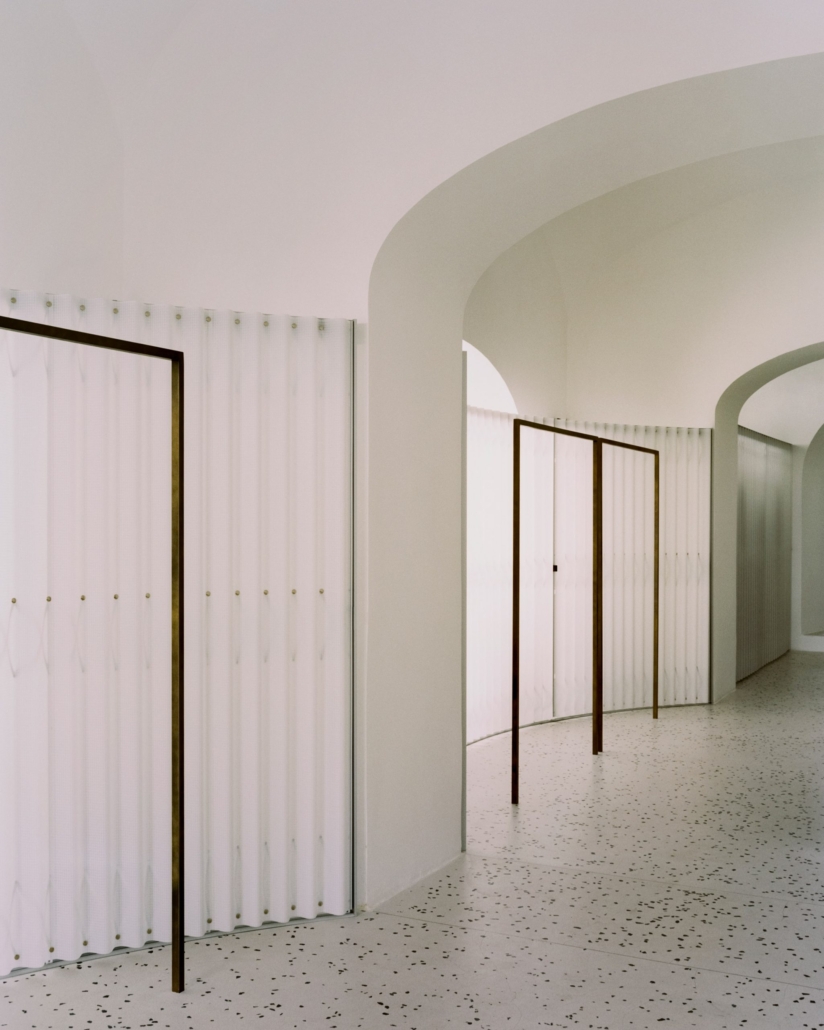 „Die Grundlage der visuellen Sprache des Projekts für Grifo210 ist die verzweigte und reiche lokale Architekturliteratur von Ischia und das Thema der mediterranen Essenz“, sagt Paola Liani, Mitbegründerin des Studios. Für das Design wurden lokaler Lavastein, tropische Pflanzen und eine von der Geologie inspirierte Farbpalette verwendet. Es ist auch voller Bögen, einem architektonischen Motiv, das überall auf der Insel zu finden ist. Das Innere von Grifo210 ist in drei Räume unterteilt, die von gewölbten Durchgängen und Decken eingerahmt werden.Um dem Raum mehr Kurven zu verleihen, wurden an den Rändern halbtransparente Faltvorhänge angebracht. Mit ihren gefalteten Formen vermitteln diese einen haptischen Eindruck.
