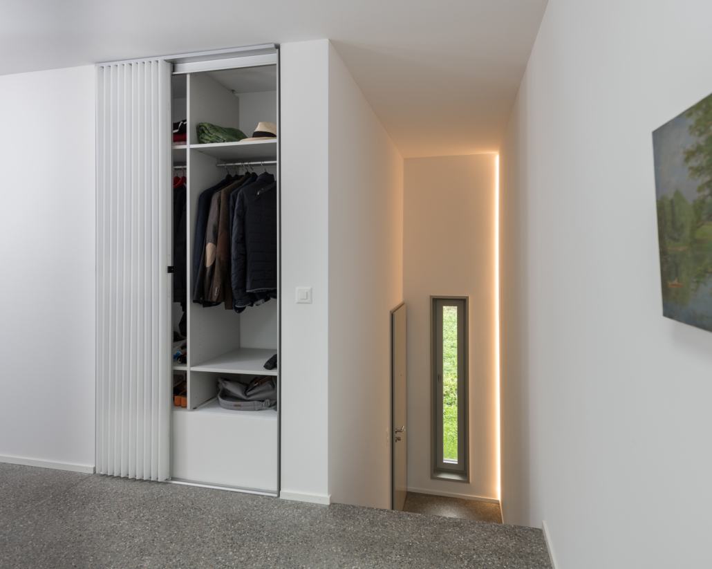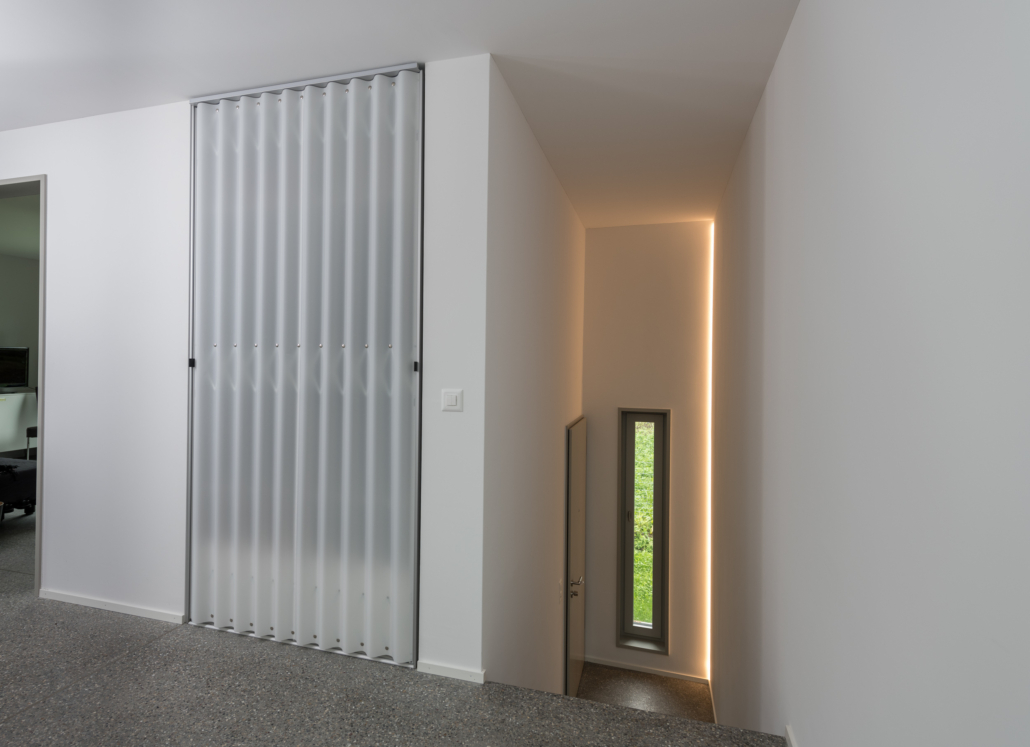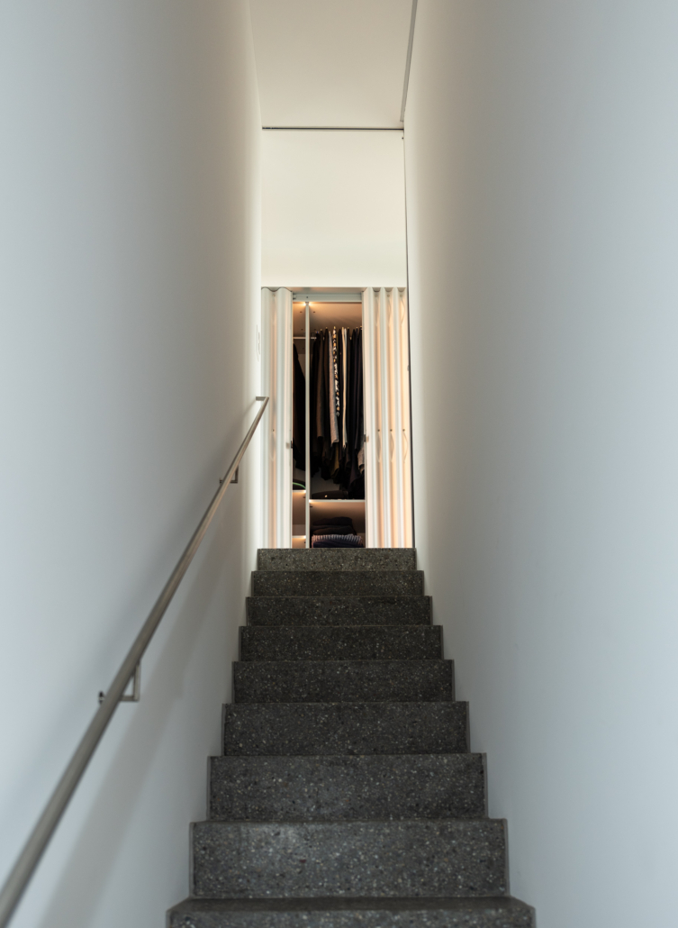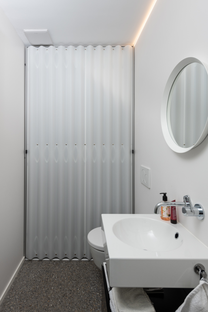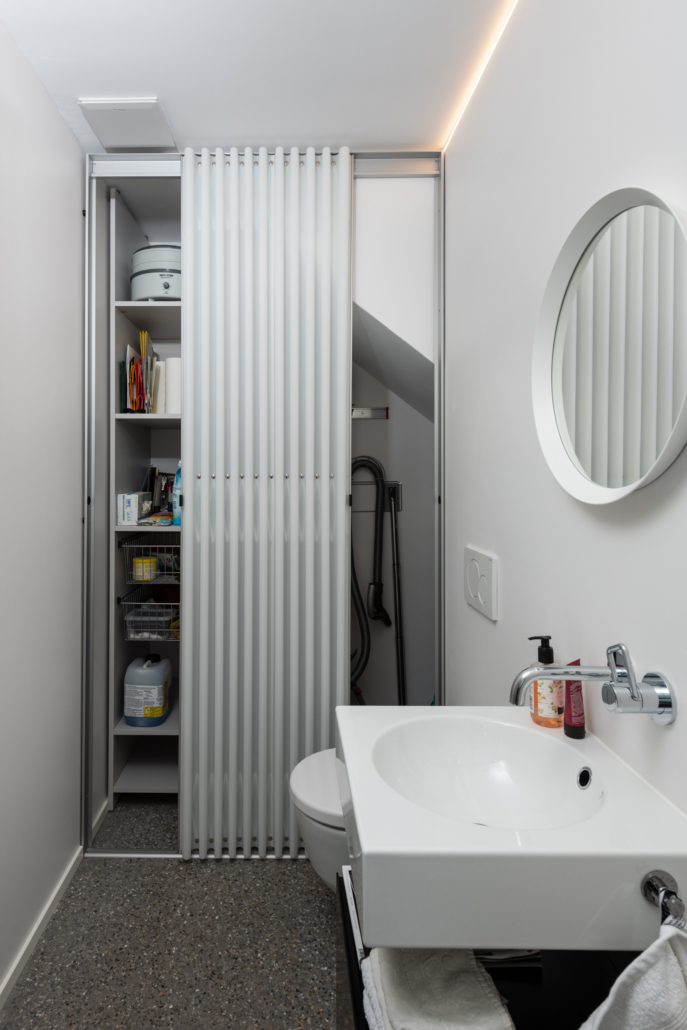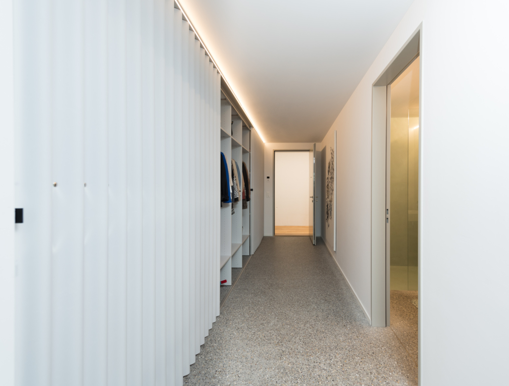 Ein älteres Ehepaar hat sich so sehr in die flexible Textilfront von Thut Möbel verliebt, dass sie diese gleich an mehreren Stellen in ihre Eigentumswohnung integriert hat. Ob als Schrank, der als Raumteiler zwischen Schlaf- und Ankleidebereich fungiert und durch den Einsatz von Filz ein angenehmeres akustisches Raumgefühl schafft, als Stauraum im Eingangsbereich oder zur Abschirmung von Elektrogeräten im Badezimmer – die Möglichkeiten sind vielfältig und bereicherten ihr Zuhause.