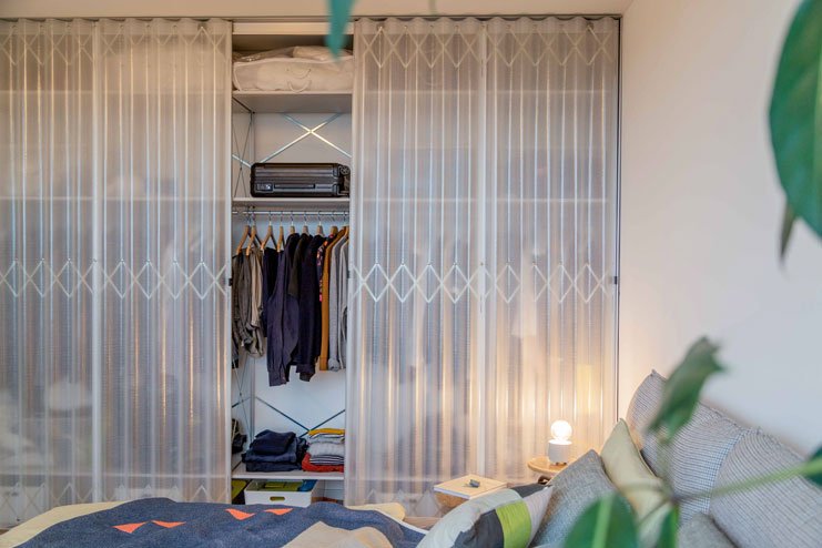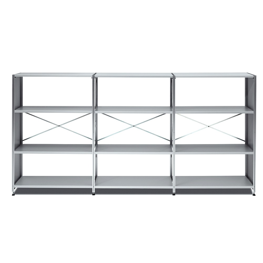 Das Systemregal ist in Tiefe, Höhe und Breite variabel, wobei verschiedene Höhen und Tiefen miteinander kombinierbar sind. Es kann mit Schubladen, Auszugstablaren, Drahtkörben, Kleiderstangen, Seitenwangen ausgestattet und zudem mit der Faltvorhang-Front ergänzt werden. Es eignet sich hervorragend als freistehendes Regal, kann aber auch an der Wand oder als Einbaulösung eingesetzt werden – sei es im Empfangsbereich, im Büro oder in der Wohnung.