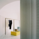 Der Entwurf beruht auf der harmonischen Anordnung von drei einfachen Volumen, die die Wohnräume gestalten und klare Verbindungen zwischen den einzelnen Bereichen schaffen. Zwei geometrischer Körper sind im rechten Winkel zueinander angeordnet, um ein zum Garten hin offenes L zu bilden, das dritte steht über den vorhergehenden und behält seine formale Autonomie Die Innenraumaufteilung erfolgt auf eine lineare und äußerst funktionale Weise. Gekonnt und stilvoll wurde der Faltvorhang eingesetzt, der die Küche dezent vom Essbereich abtrennt und so eine subtile Ruhe schafft.