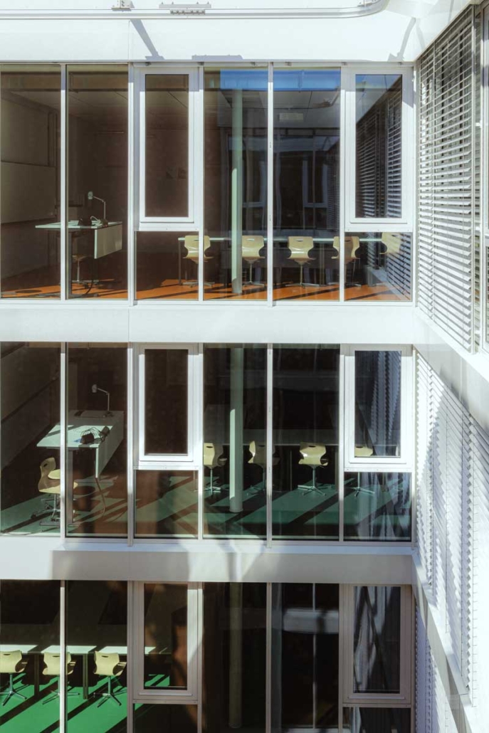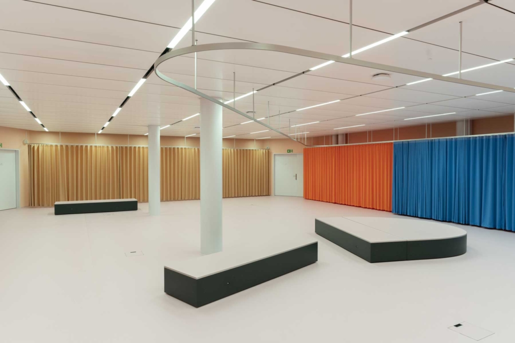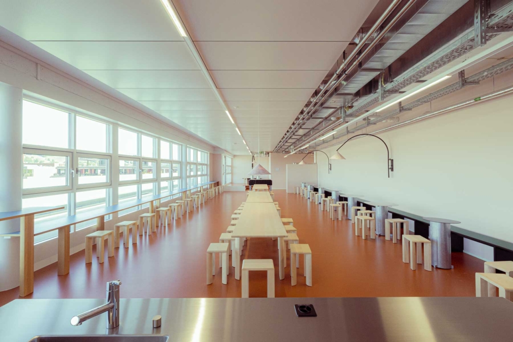 Angesichts des wachsenden Platzbedarfs entschloss sich der Kanton Zürich, ein ehemaliges Bürogebäude zu mieten und in ein Ausbildungszentrum umzubauen. Mit der Gestaltung des Gebäudes wurde das Zürcher Designstudio Kueng Caputo beauftragt, das nicht nur ein aussergewöhnliches Farbkonzept entwickelte, sondern auch die gesamte Möblierung der öffentlichen Räume übernahm – und dafür mit dem Goldenen Hasen ausgezeichnet wurde.